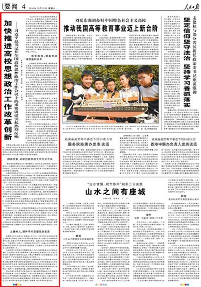 习近平总书记在全国高校思想政治工作会议上的重要讲话,从培养中国特色社会主义合格建设者和可靠接班人的高度,深刻回答了事关我国高等教育事业长远发展和高校思想政治工作的一系列重大问题,为我国高等教育事业改革发展指明了方向,引起了全国教育界的热烈反响。